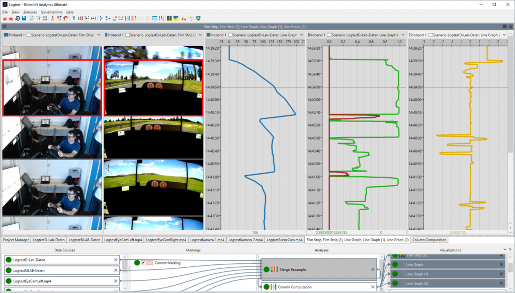 Figure 3: Analysis of the recorded and synchronized data in Blickshift Analytics